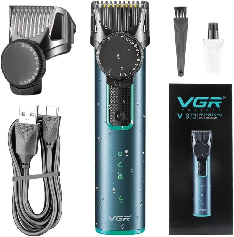 ماكينة حلاقة احترافية للعناية الشخصية بتحفيز قوي وشحن سريع ومشط بمنفذ USB للرجال من في جي ار، VGR V-973