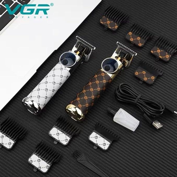 VGR-689 – ماكينة حلاقة كهربائية احترافية قابلة للشحن للرجال من في جي ار – بشاشة LED وشفرات تيتانيوم