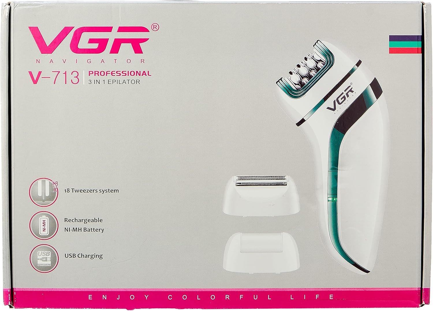 - ماكينة إزالة الشعر VGR V-713 تعمل بالكهرباء والبطارية مع 3 رؤوس متعددة الوظائف