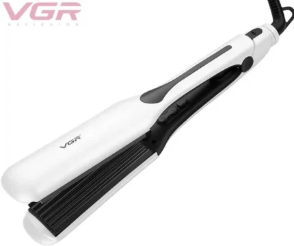 مكواة تمويج وتكثيف الشعر الاحترافية VGR V-557 – سيراميك، 7 أسنان، شاشة LED، أبيض
