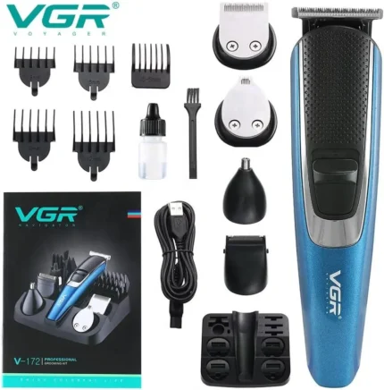 VGR-172 – ماكينة حلاقة كهربائية احترافية للرجال قابلة للشحن من جي ار – متعددة الاستخدامات مع 5 رؤوس